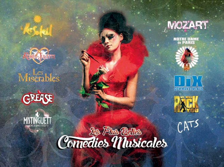 De large extraits de comédie musicale connus et réinterpreté sont disponibles comme Notre Dame de Paris, Les Misérables, Les 10 commandements etc..mais aussi l'une des dernières comédies à succès : Mozart Opéra Rock dans un spectacle complet : Les plus belles comédies musicales.