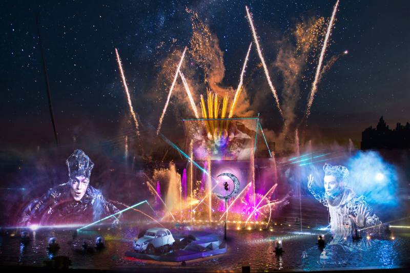 Nous avons eu l'occasion d'immerger totalement les spectateurs du Futuroscope dans cette histoire merveilleuse, afin de leur faire vivre un expérience unique et mémorable. En effet, en plus d'avoir mis en scène ce spectacle musical sur leur plan d'eau, permettant déjà l'utilisation de ses nombreuses fontaines, le parc d'attraction à mis à notre disposition des projecteurs holographiques offrant au spectacle, un décor 3D animé des plus incroyables, en format hologramme. Le tout combiné aux illuminations colorées des projecteurs, a donné une prestation hors du commun.