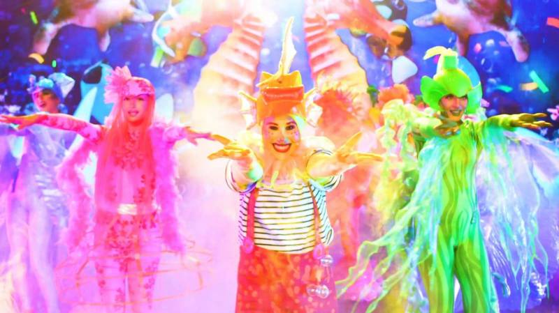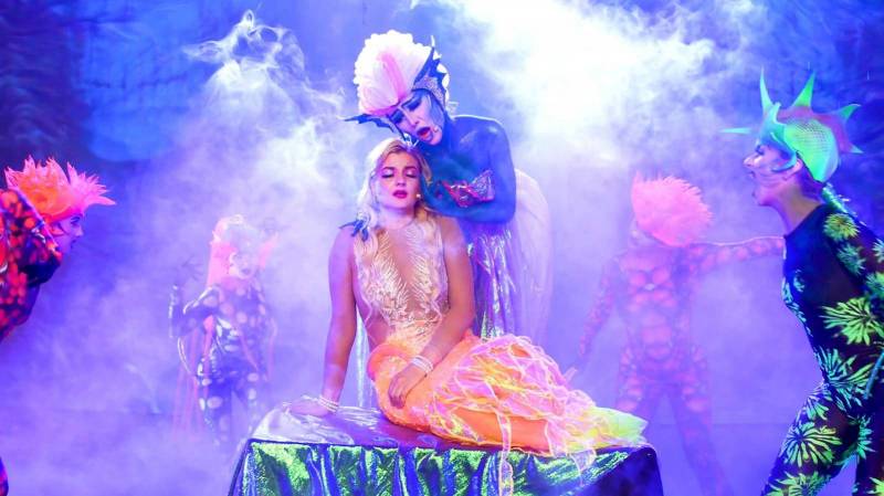 C'est un show nocturne exceptionnel que le Futuroscope nous a permis de mettre en place, puisque c'est sur une scène montée sur leur plan d'eau Aquaféerie, situé au centre du parc d'attraction, que nos artistes pluridisciplinaires ont interprété les rôles phares de ce compte féerique se déroulant au coeur de l'Océan, ainsi que les chansons cultes qui l'habitent.